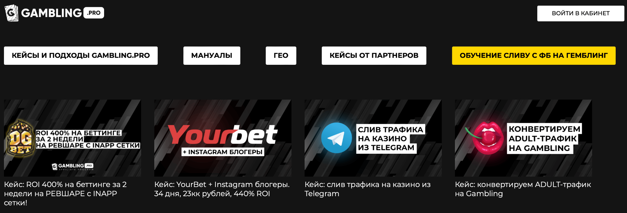 Gambling.pro — возглавляет рейтинг CPA-сетей, адаптированных под работу с Gambling-офферами. Это первая партнерская программа, которая начала в открытом доступе делиться собственной экспертизой, а затем создала собственное обучение по арбитражу трафика.