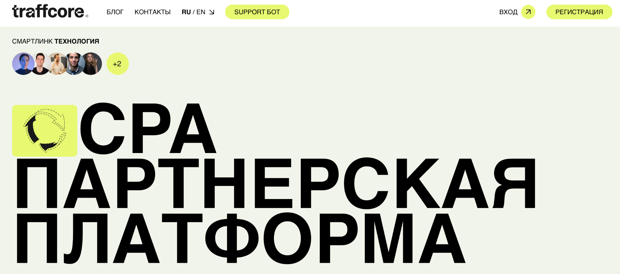 TraffCore — это партнерская платформа, ориентированная на монетизацию трафика посредством SmartLink или специальных офферов по запросу под любое гео. Алгоритмы смартлинки ротируют офферы с целью получения наивысшего EPC и CR под любой вид трафика.