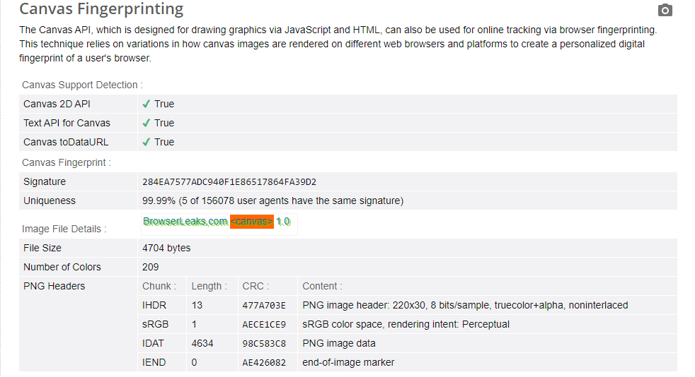 - Графические технологии браузера. В первую очередь, Canvas и WebGL. Это технологии по созданию графики и 3D-изображений. Но системы отслеживания их используют для генерации уникального fingerprint на основе того, как браузер обрабатывает изображения.