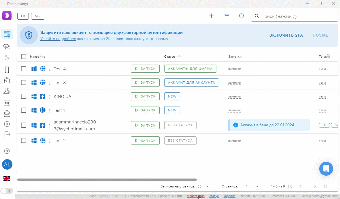 Например, после апдейта Chromium появилась новая кнопка в интерфейсе. Антифрод система видит, что пользователь использует новое ядро, а User Agent ему не соответствует. Чтобы избежать дополнительных подозрений, всегда обновляйте старые юзерагенты в приложении Dolphin anty. Сделать это можно за пару кликов во вкладке «Состояние».